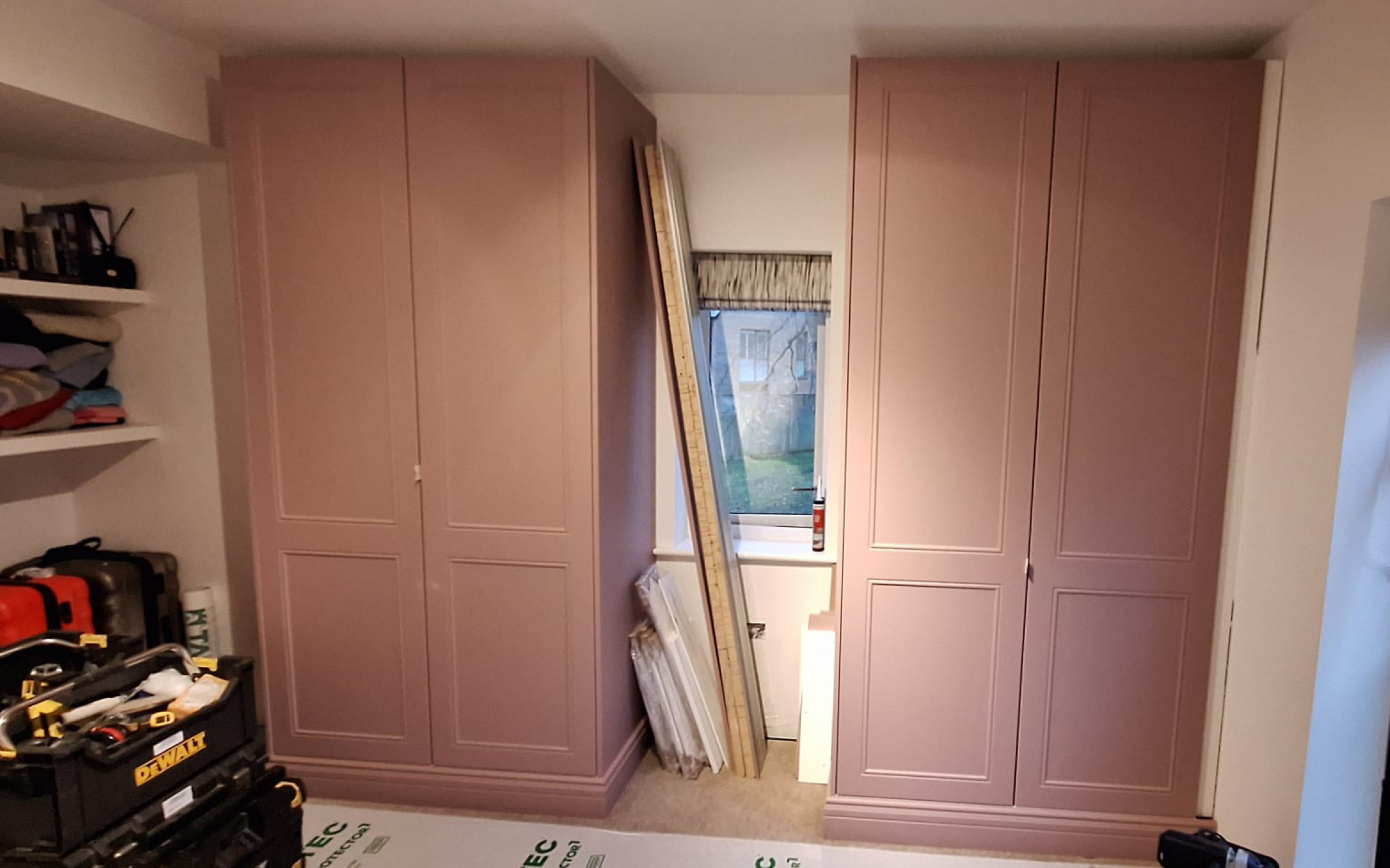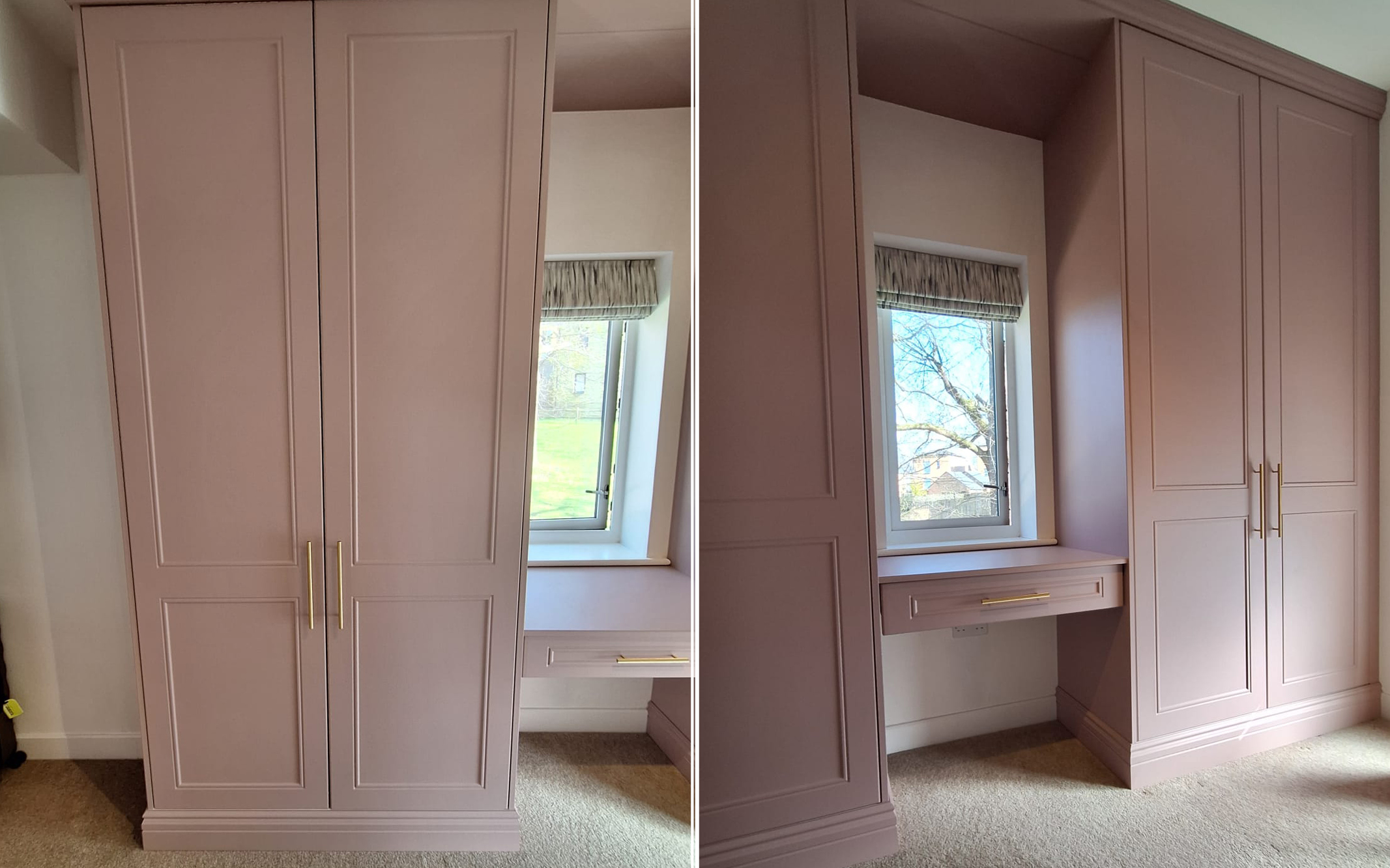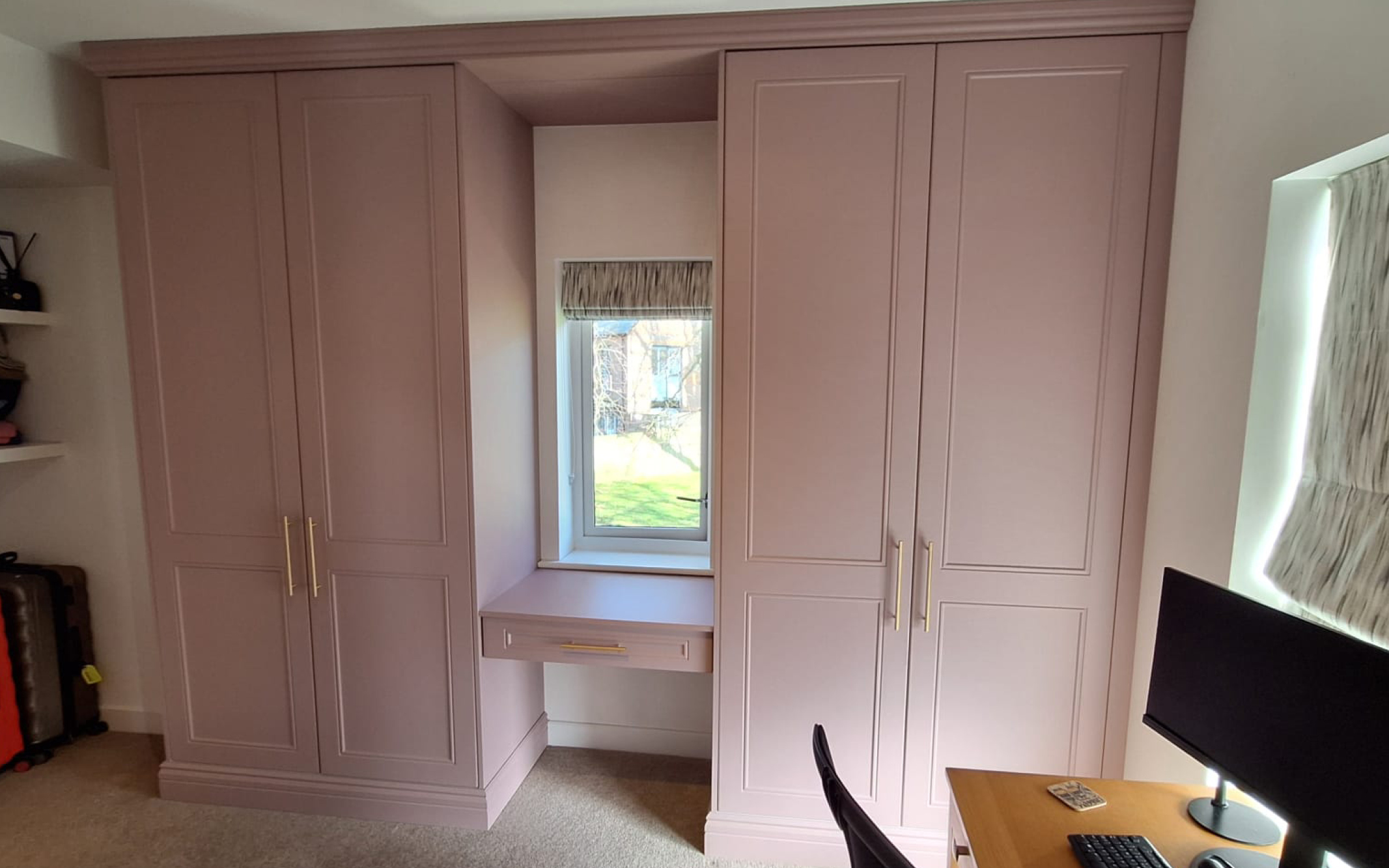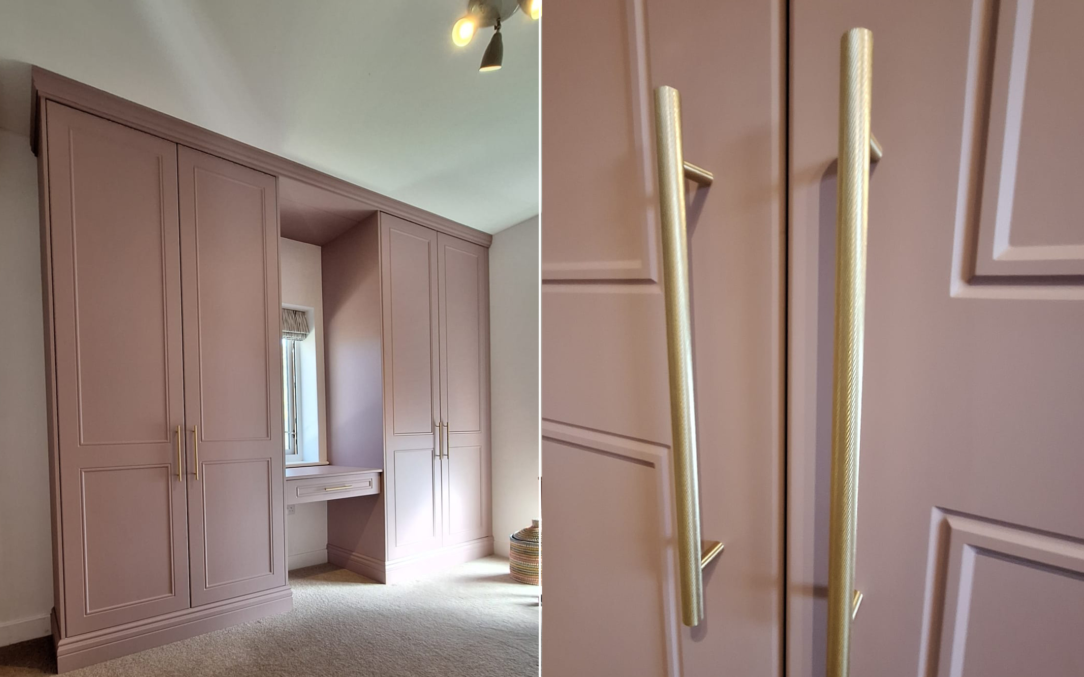 Built-in wardrobes with dressing table, Dusky Pink doors and fronts