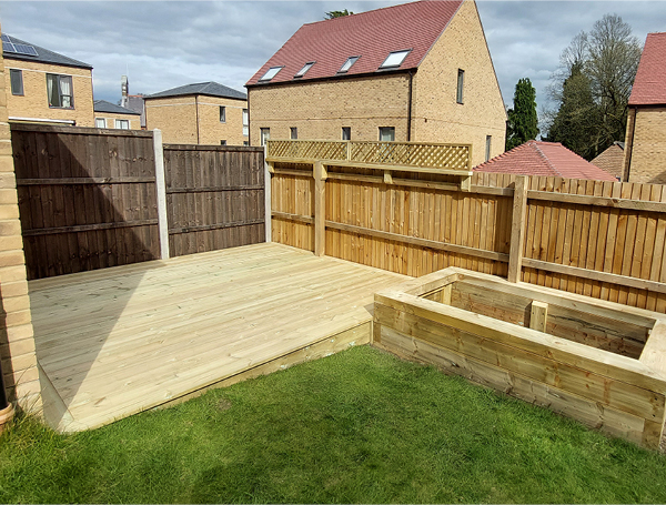 Treated Timber decking Treated Timber decking with sleeper raised bed and trellis fence...